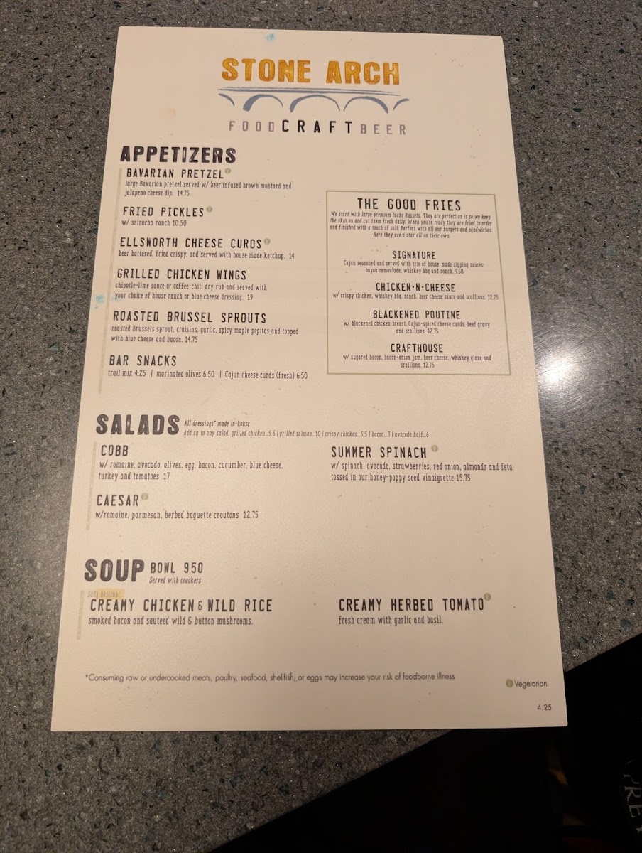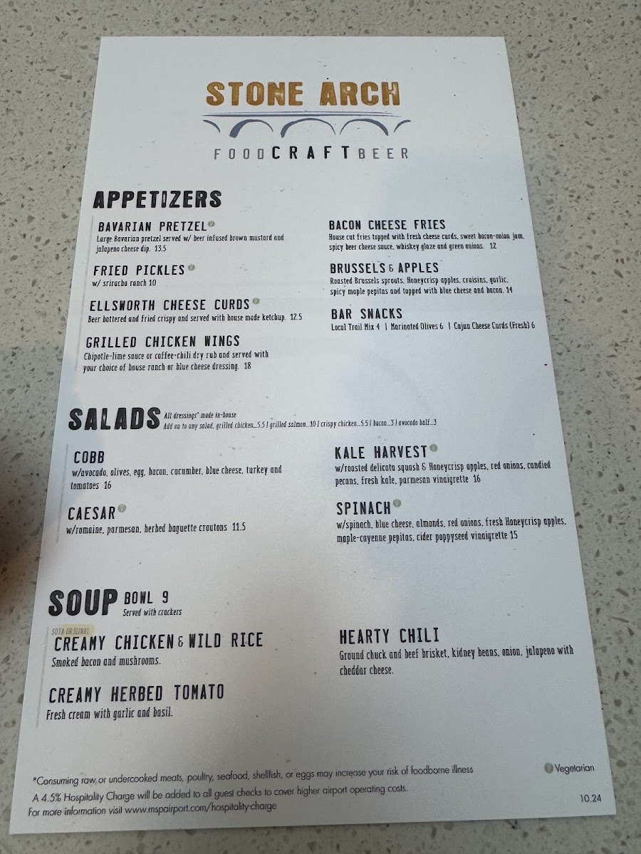 Welcome to Stone Arch, an enchanting culinary oasis located conveniently just past security at MSP airport. This vibrant gem boasts an eclectic mix of seating options from cozy booths to lively bar stools, ensuring that every guest finds their perfect spot. What sets Stone Arch apart is not just its accessibility but the unique atmosphere that remains serene even during peak hours, allowing for a peaceful dining experience before your flight.